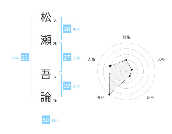 松瀬 吾論さんの外格は23画の5点!