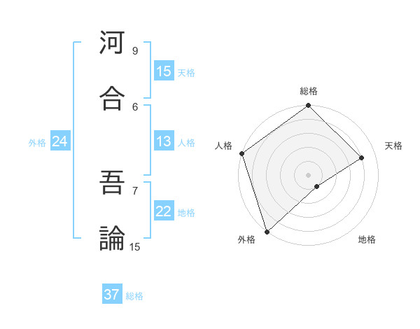河合 吾論さんの総格は37画の5点!