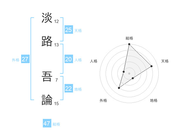 淡路 吾論さんを姓名の画数から五運を鑑定