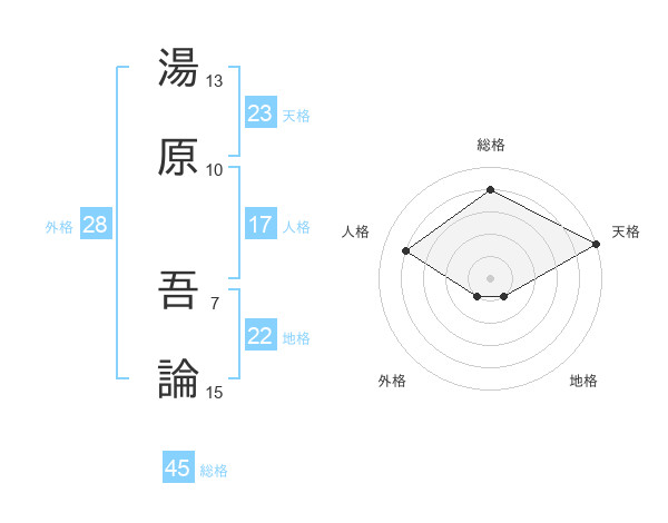 湯原 吾論さんを姓名の画数から五運を鑑定