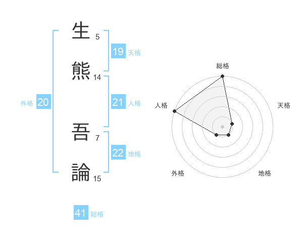 生熊 吾論さんを姓名の画数から五運を鑑定