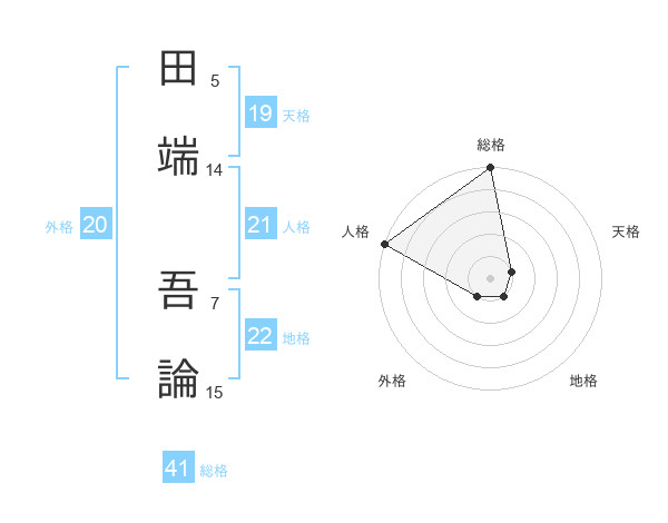 田端 吾論さんを姓名の画数から五運を鑑定