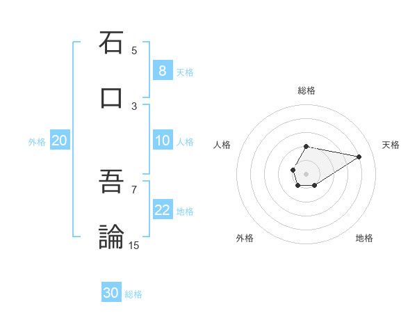 石口 吾論さんの総格は30画の2点!