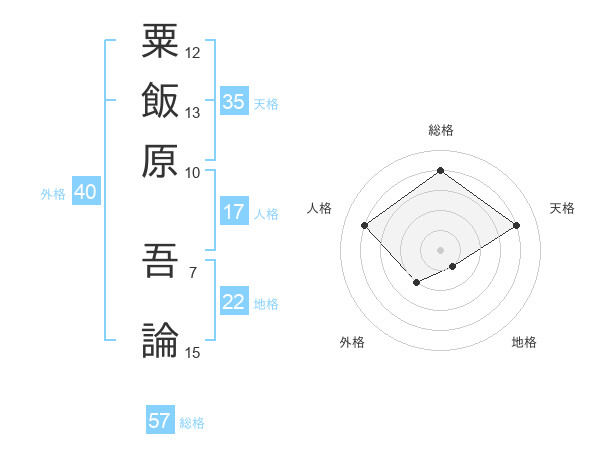 粟飯原 吾論さんを姓名の画数から五運を鑑定