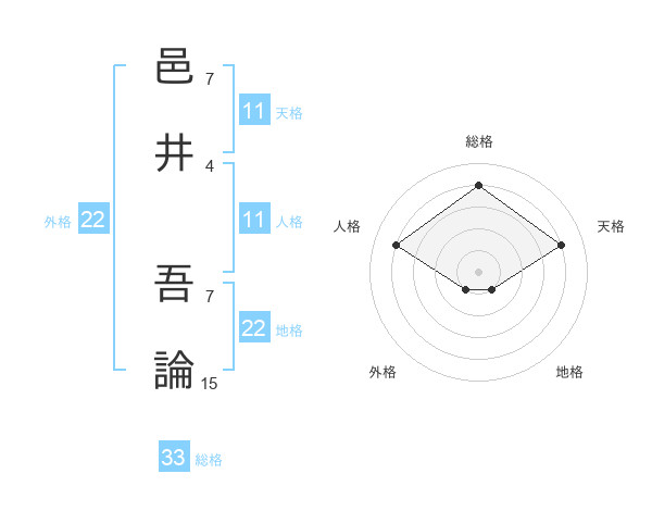 邑井 吾論さんを姓名の画数から五運を鑑定
