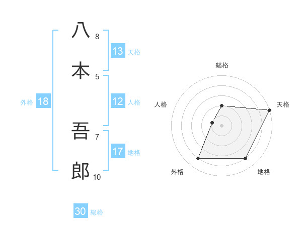 八本 吾郎さんを姓名の画数から五運を鑑定