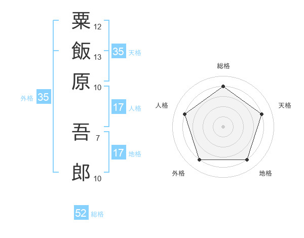 粟飯原 吾郎さんを姓名の画数から五運を鑑定
