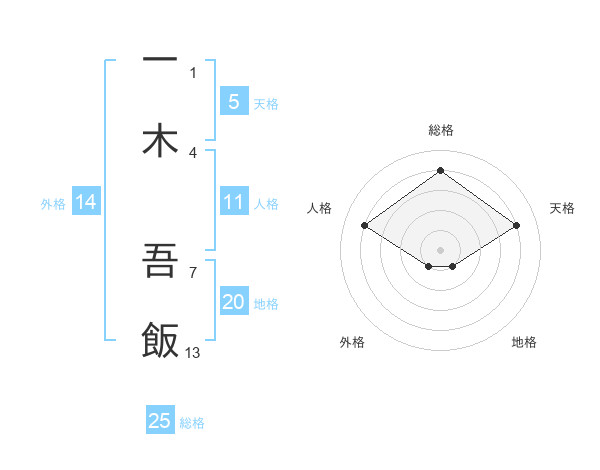 一木 吾飯さんを姓名の画数から五運を鑑定