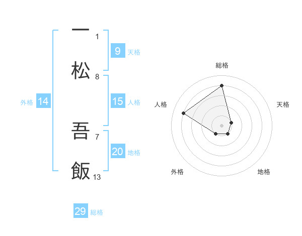 一松 吾飯さんの総格は29画の4点!