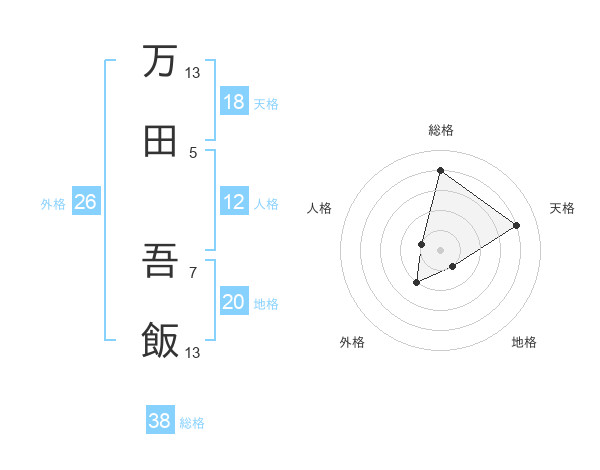 万田 吾飯さんの総格は38画の4点!
