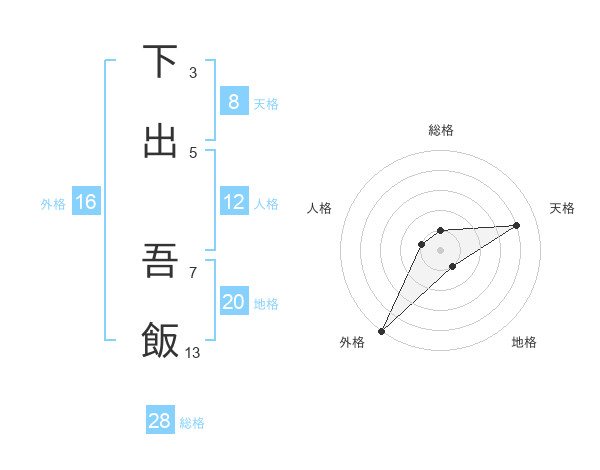 下出 吾飯さんの地格は20画の1点!