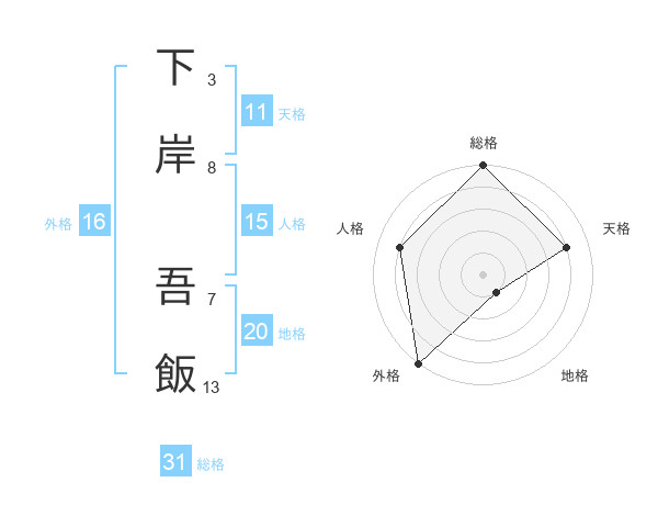 下岸 吾飯さんの総格は31画の5点!