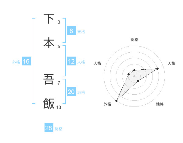 下本 吾飯さんを姓名の画数から五運を鑑定