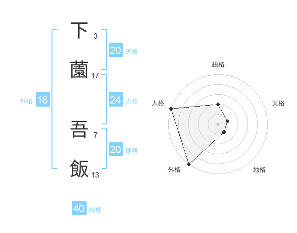 下薗 吾飯さんの地格は20画の1点!