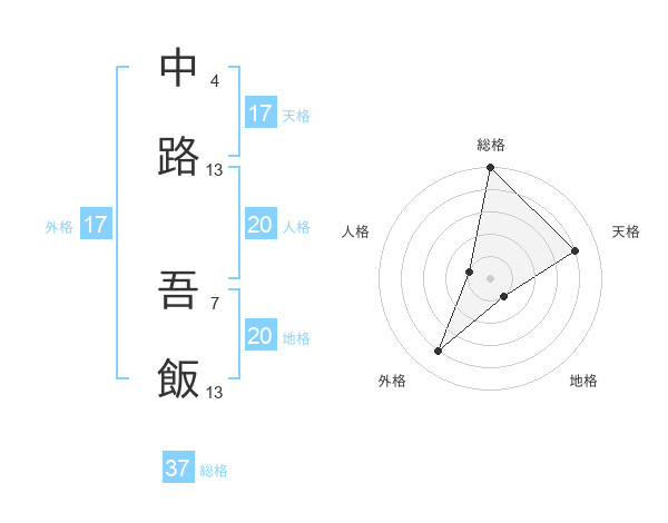 中路 吾飯さんの天格は17画の4点!