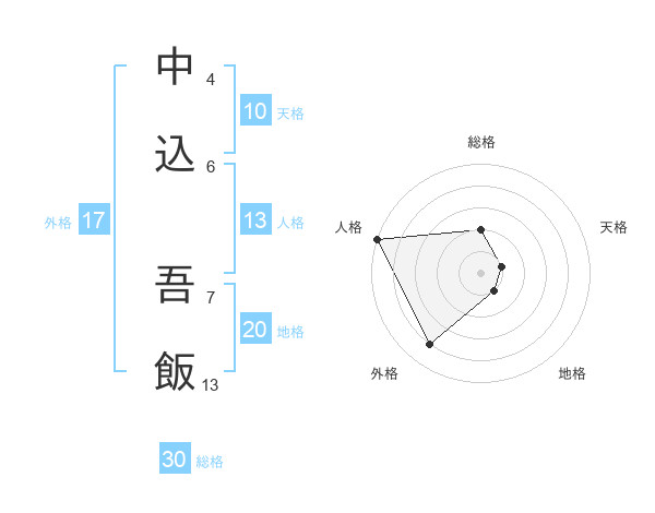 中込 吾飯さんの総格は30画の2点!