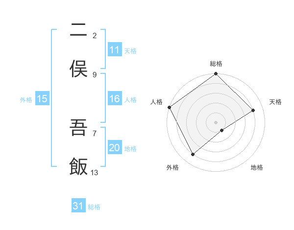 二俣 吾飯さんの総格は31画の5点!