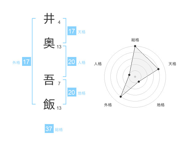 井奥 吾飯さんの総格は37画の5点!