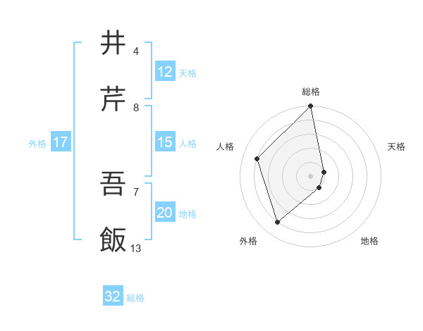 井芹 吾飯さんを姓名の画数から五運を鑑定