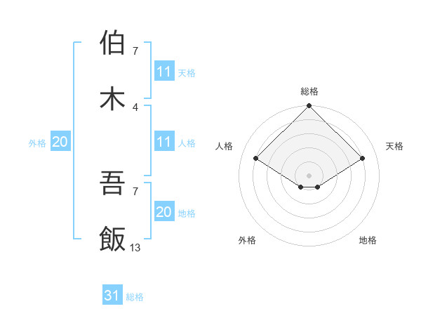 伯木 吾飯さんの総格は31画の5点!