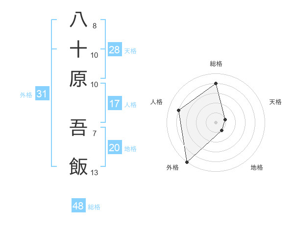 八十原 吾飯さんを姓名の画数から五運を鑑定
