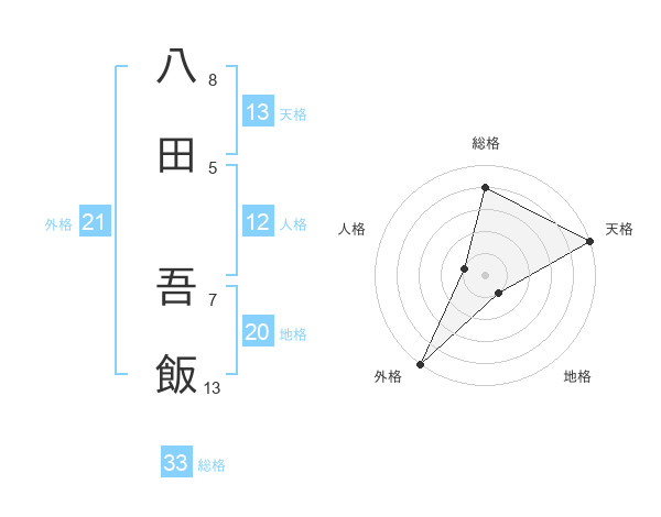 八田 吾飯さんの天格は13画の5点!