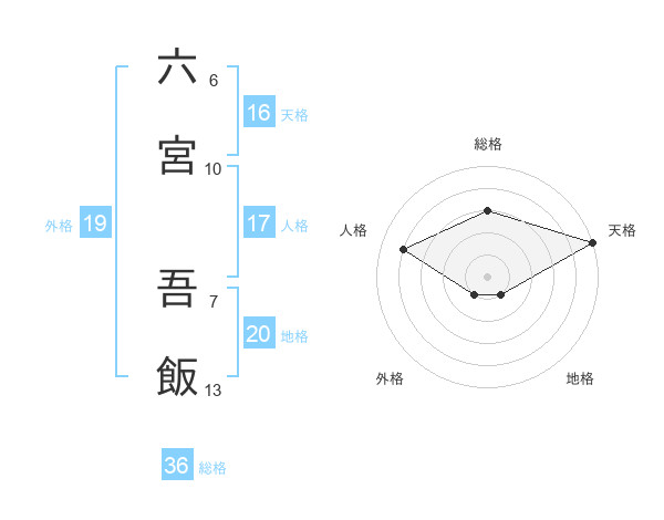 六宮 吾飯さんの総格は36画の3点!