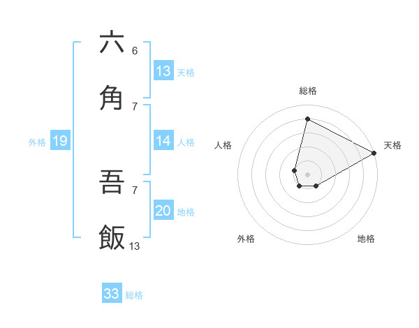 六角 吾飯さんを姓名の画数から五運を鑑定