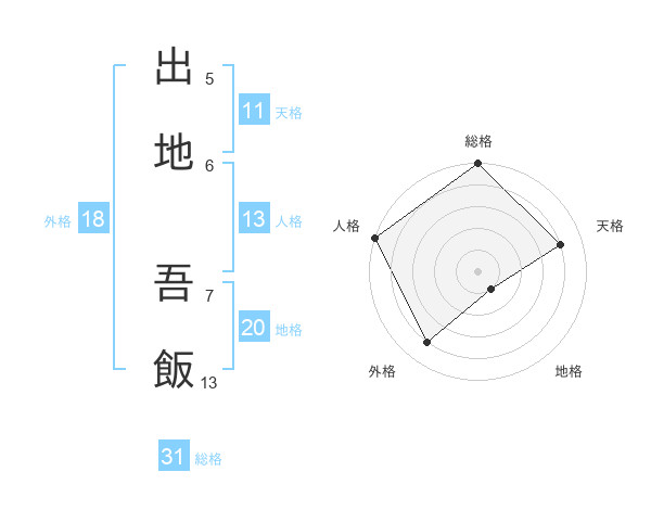 出地 吾飯さんを姓名の画数から五運を鑑定