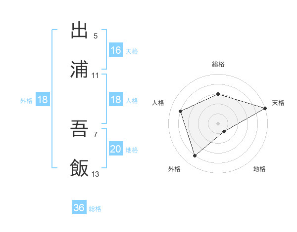出浦 吾飯さんの天格は16画の5点!