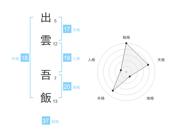出雲 吾飯さんを姓名の画数から五運を鑑定