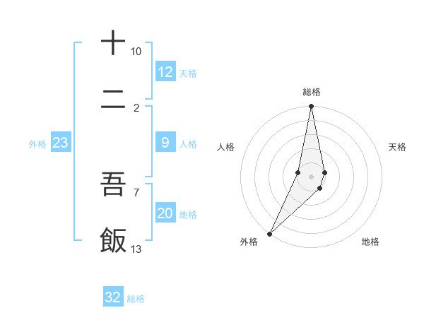十二 吾飯さんの総格は32画の5点!