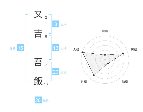 又吉 吾飯さんの天格は8画の4点!