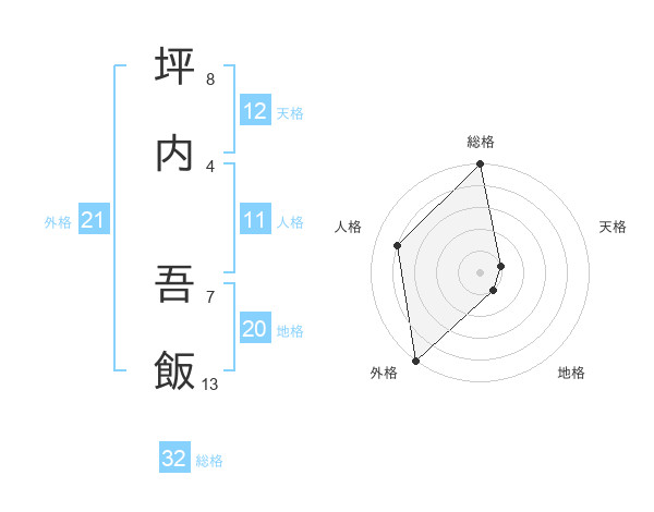 坪内 吾飯さんを姓名の画数から五運を鑑定