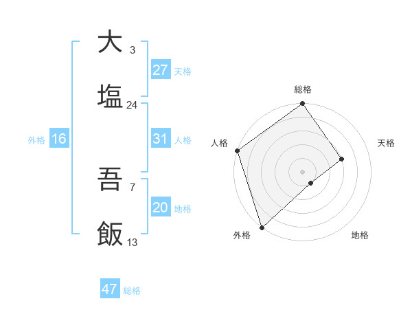 大塩 吾飯さんの総格は47画の5点!