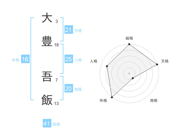 大豊 吾飯さんの天格は21画の5点!