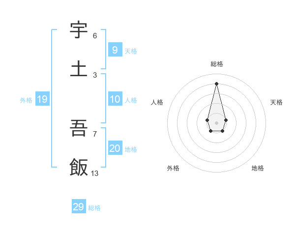 宇土 吾飯さんを姓名の画数から五運を鑑定