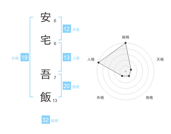 安宅 吾飯さんの総格は32画の5点!