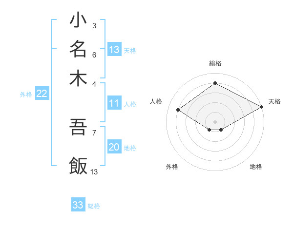 小名木 吾飯さんを姓名の画数から五運を鑑定