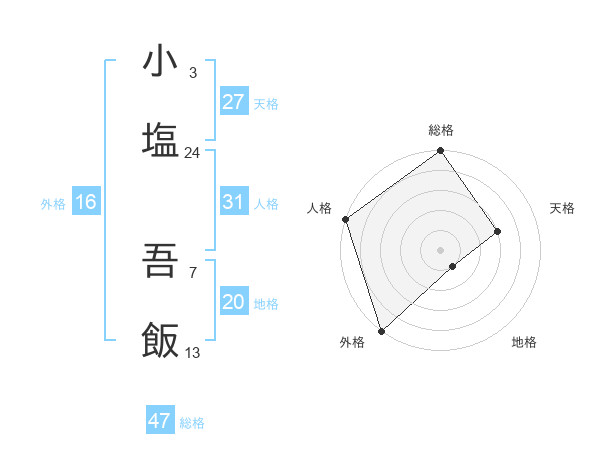 小塩 吾飯さんを姓名の画数から五運を鑑定