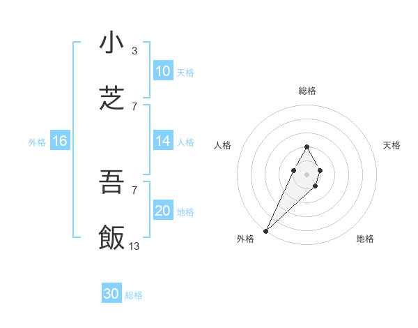 小芝 吾飯さんの総格は30画の2点!