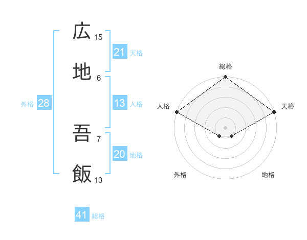 広地 吾飯さんの天格は21画の5点!