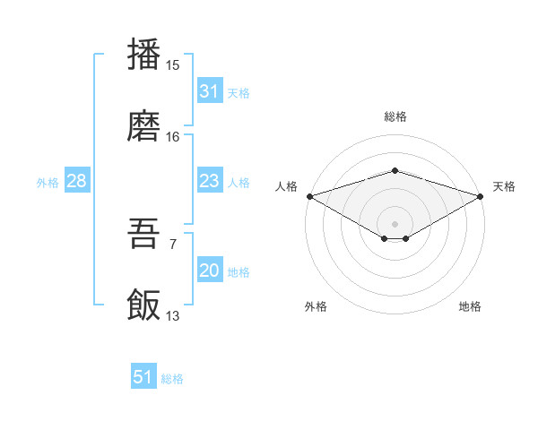 播磨 吾飯さんの総格は51画の3点!