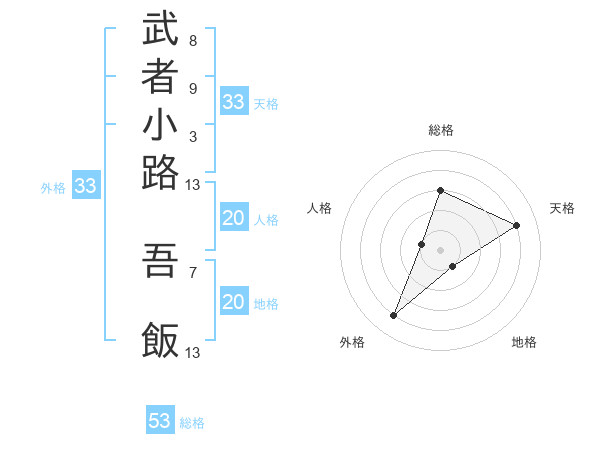 武者小路 吾飯さんの総格は53画の3点!