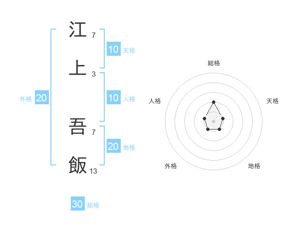 江上 吾飯さんの総格は30画の2点!