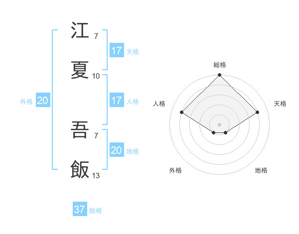 江夏 吾飯さんを姓名の画数から五運を鑑定