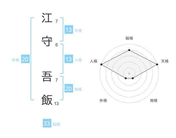 江守 吾飯さんの総格は33画の4点!