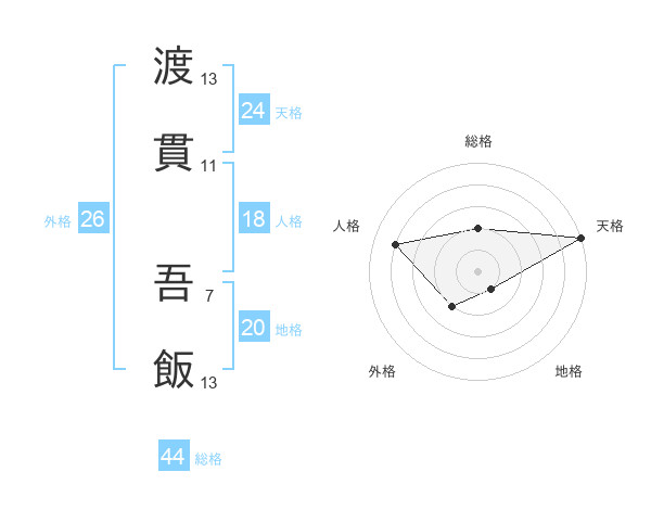 渡貫 吾飯さんの天格は24画の5点!