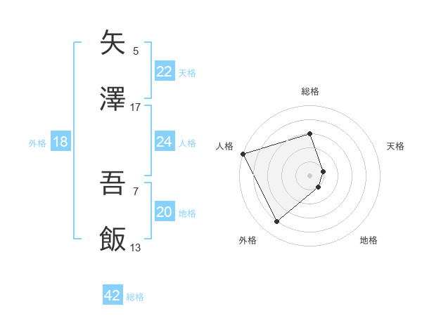 矢澤 吾飯さんの天格は22画の1点!