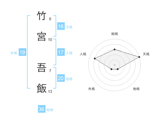 竹宮 吾飯さんの総格は36画の3点!
